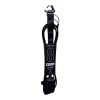 Cordão feito em Poliuretano (PU), matéria prima Alemã, resistente e desenvolvido para não ressecar ou quebrar, e elástico o suficiente para não dar tranco. Medindo 2m, possui duplo distorcedor (acabamento injetado flex system),costuras reforçadas em travete, tornozeleira feita em neoprene de 3mm e velcro importado. Indicado para ondas de 6 a 9 pés (ondas grandes). Dica: um leash deve ter ao menos o tamanho de sua prancha, lavar sempre com água doce após o uso.